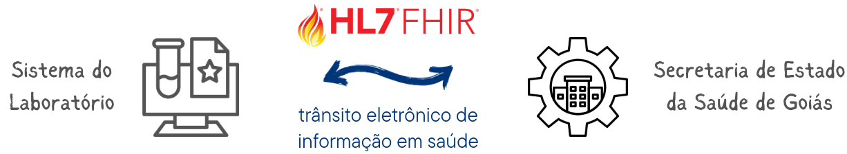 O sistema do laboratório envia eletronicamente o resultado registrado pela Joana para a SES-GO. Tecnicamente esta transferência é detalhada em um Guia de Implementação hemograma. Os exames enviados são verificados pela SES-GO com foco na segurança do paciente e disponibiliza o resultado para o seu Pedro pelo aplicativo Meu PEP.